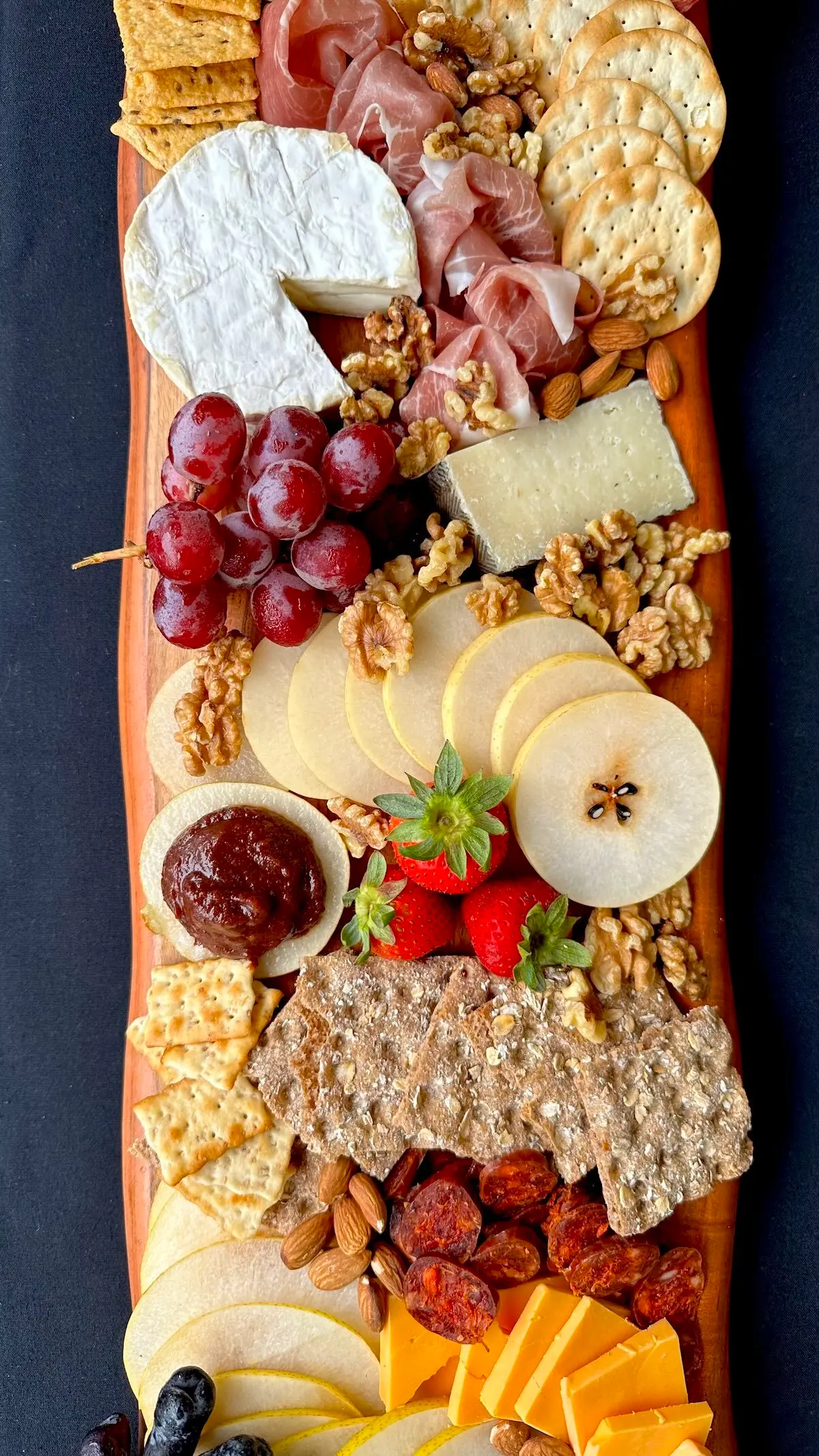 Presentation sets the tone. The platter or board you use is the visual foundation of your entire plate, so choose one that feels intentional, and that is large enough to accommodate an abundance of ingredients. (A common mistake when assembling fruit trays is choosing an undersized platter).
